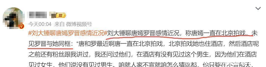 狗仔再度爆料,网友炸锅最近,有个著名的狗仔又放出了一段爆料视频,还暗示说唐嫣和罗晋之间的婚姻出了点问题。有人爆料说,近段时间唐嫣一直在北京拍戏,不过没有回来住,而是选择住在酒店里。